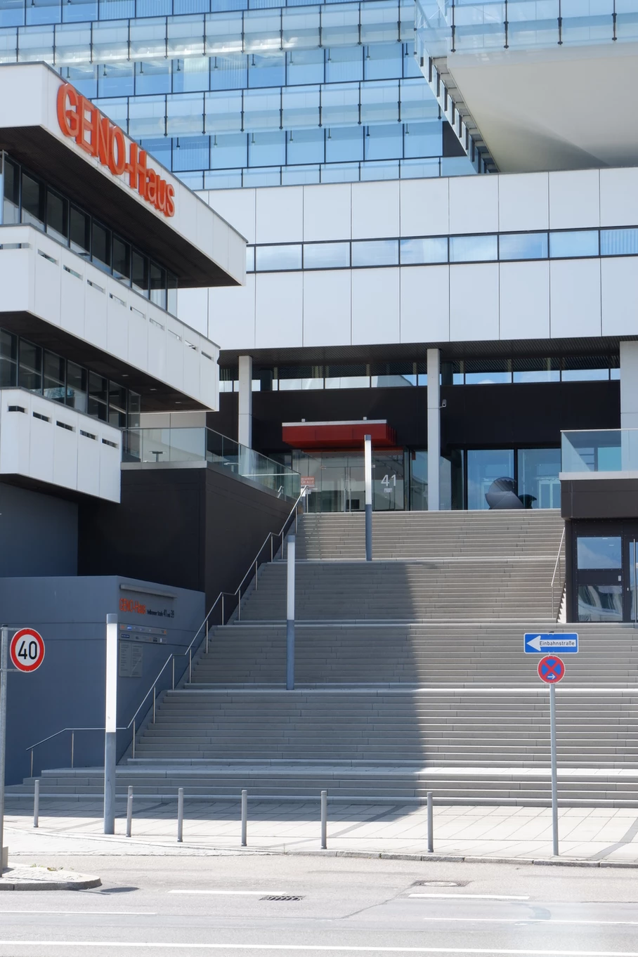 Die frühere Gestaltung mit Rolltreppe und Terrassierung ist mittlerweile durch eine großzügige Freitreppe ersetzt worden.